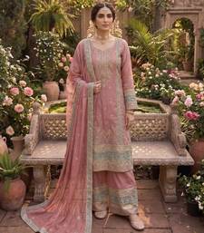 Pink chinon semi stitched suit with embroidery & sequence work