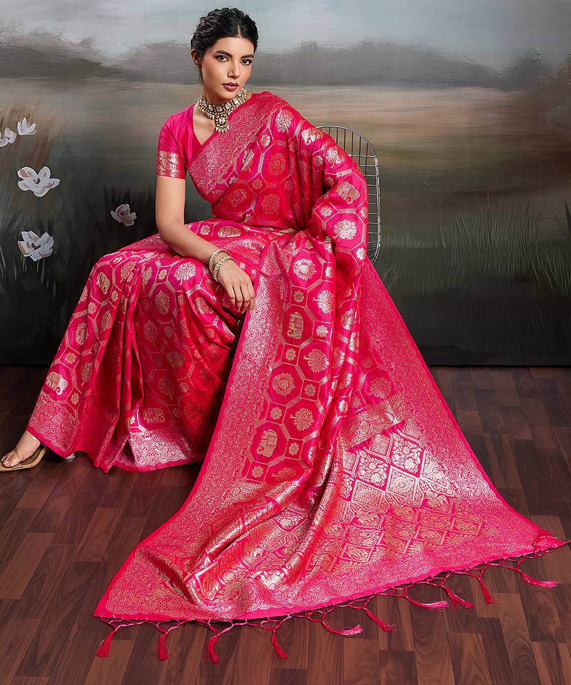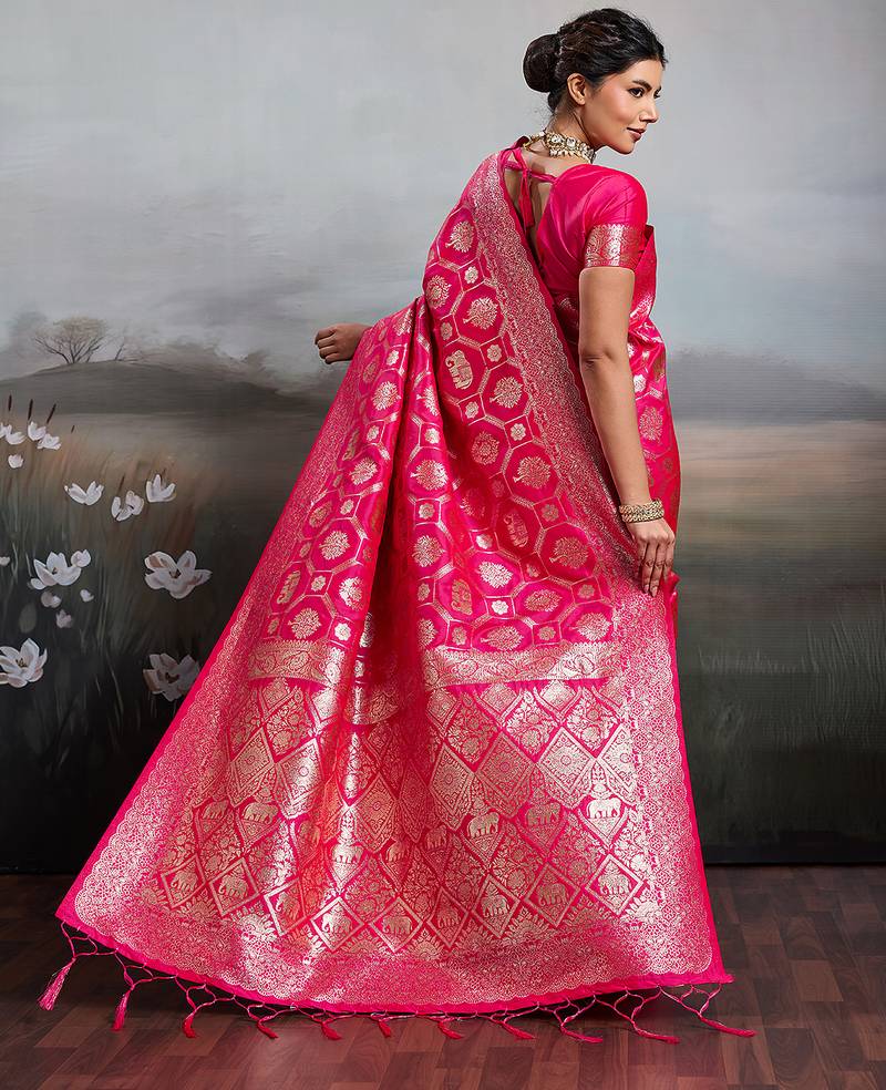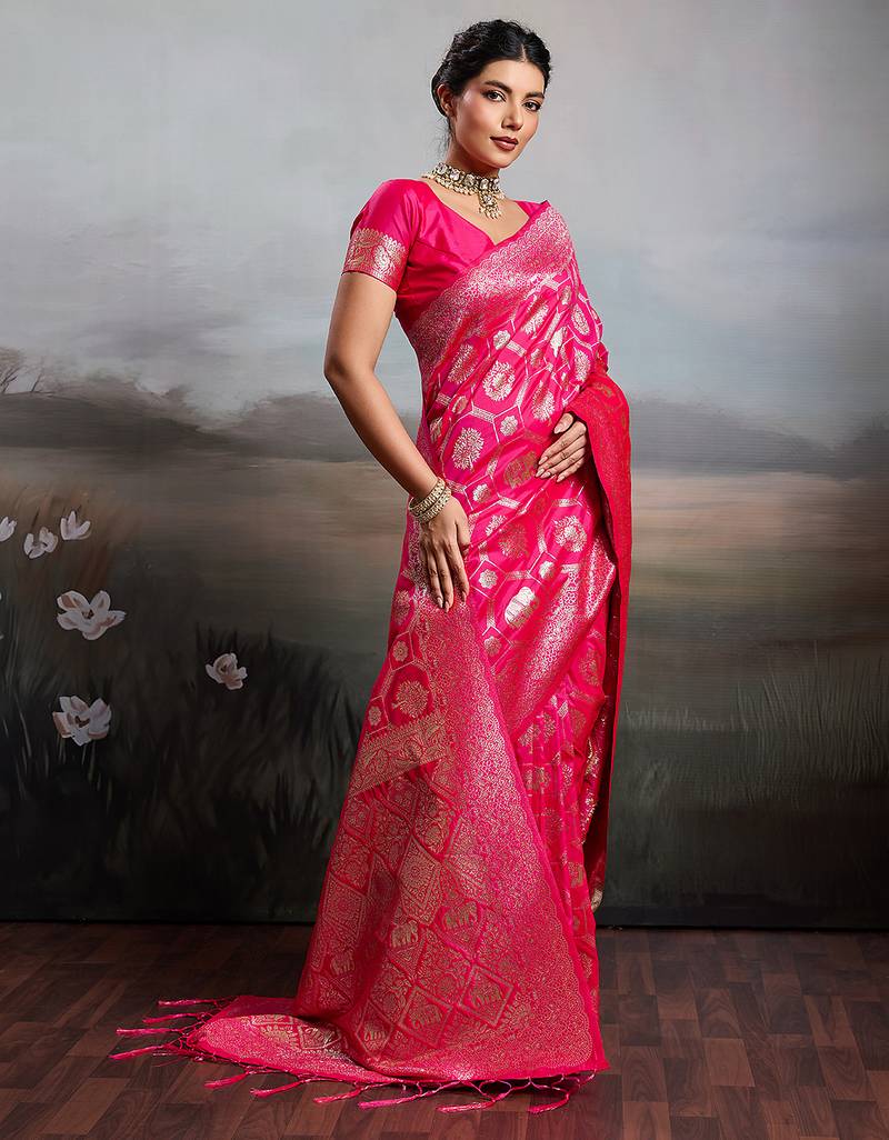 Pink silk blend woven saree with blouse