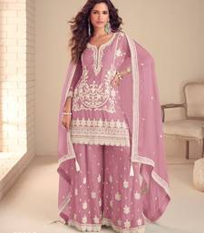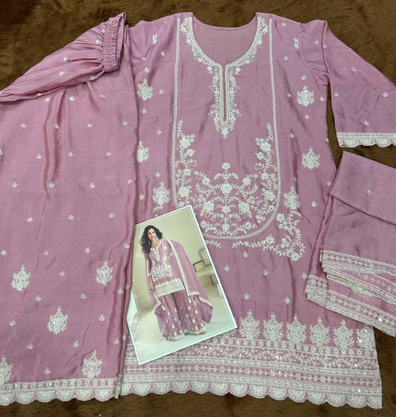 | Product Name | Purple Chinon Free Size Stitched Suit With Embroidery & Sequence Work | |