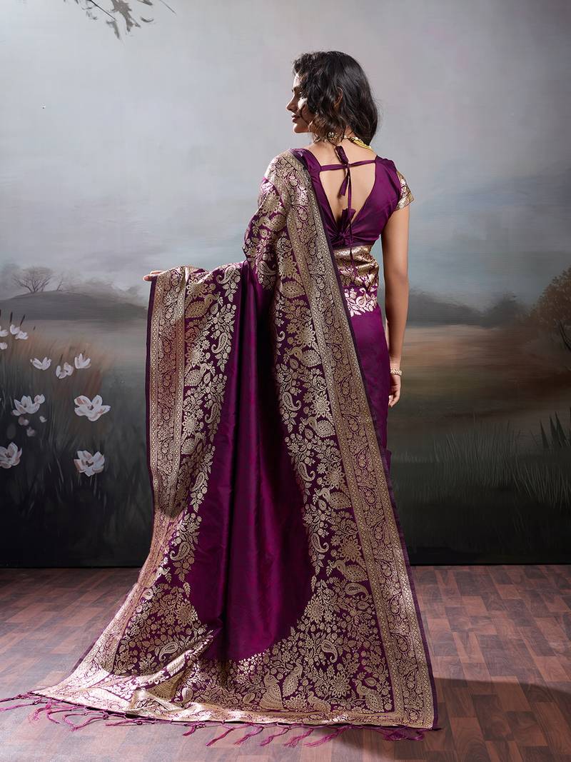 Product Name Purple Silk Blend Woven Saree With Blouse