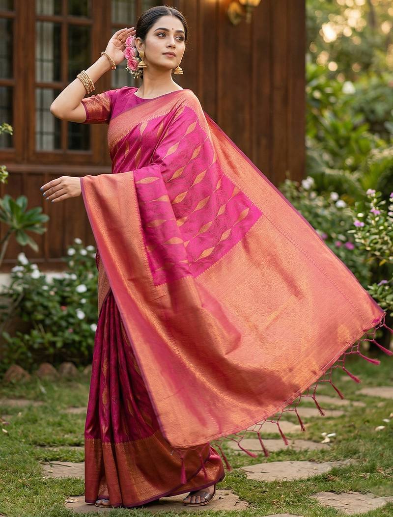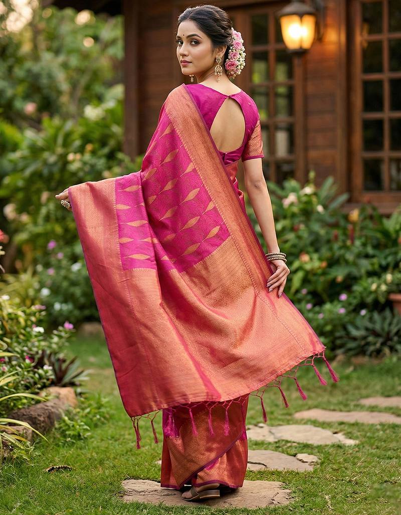 | Product Name | Rani Pink Silk Blend Woven Saree With Blouse | |