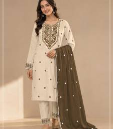 | Product Name | White Mehendi Khadi Cotton Semi Stitched Suit With Embroidery & Patch Work | |