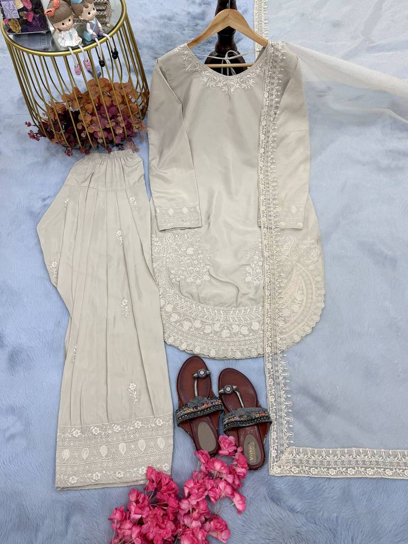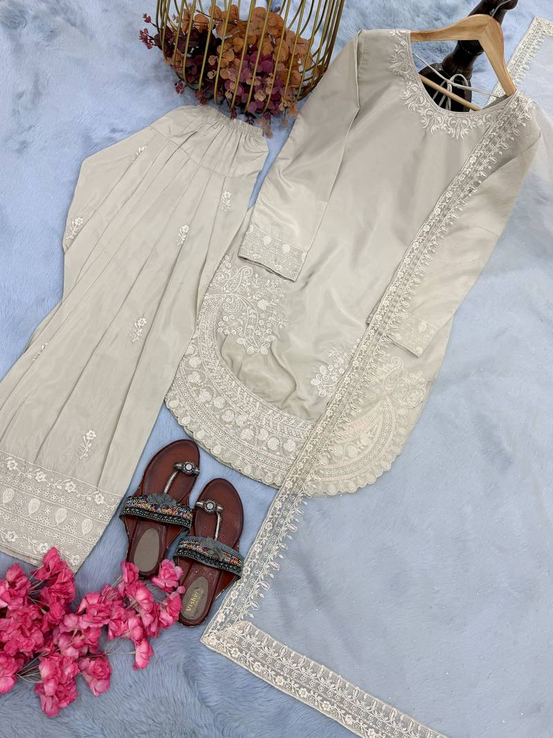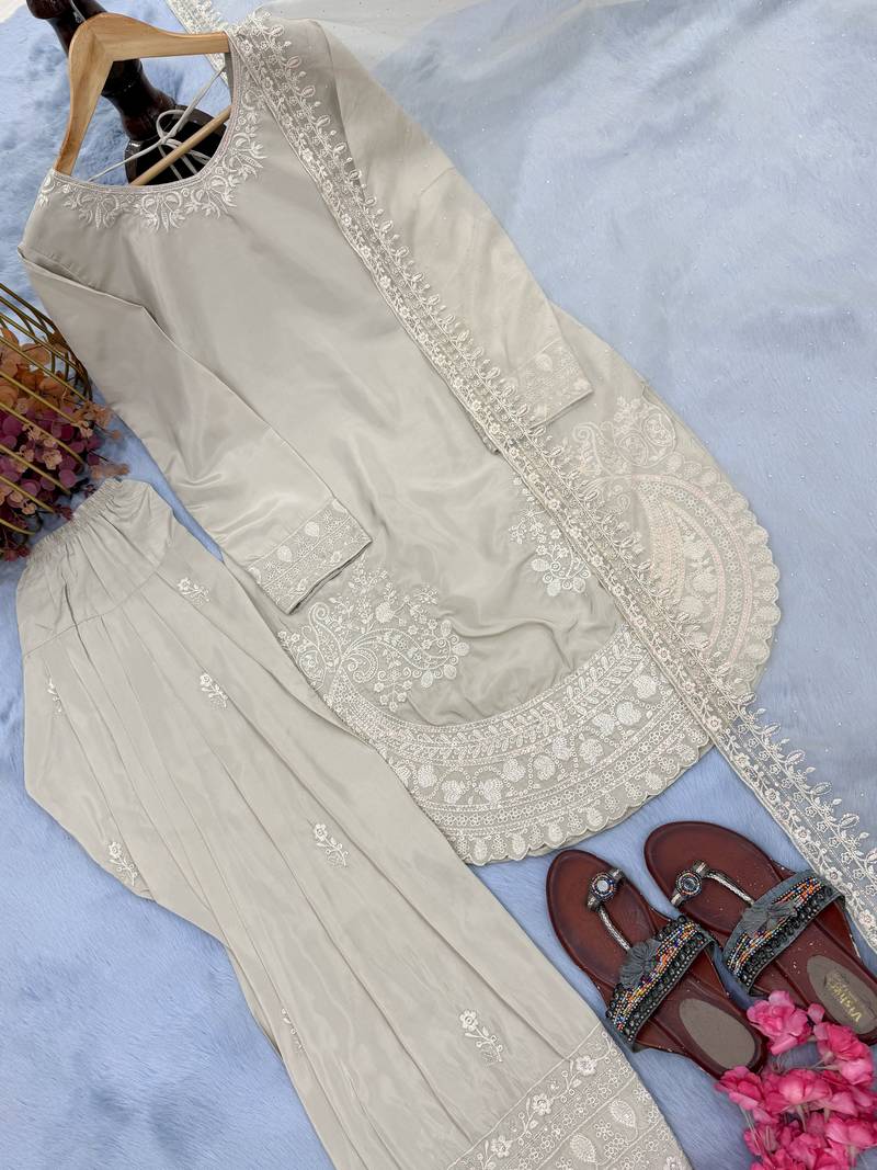 | Product Description | Step Into Elegance With This Beautifully Designed Party Wear Ensemble Crafted From Premium Pure Natural Crepe Fabric. This Stylish Set Features A Finely Embroidered Top Enhanced With 3 Mm Sequence Work And Intricate Cutwork Detailing, Offering A Graceful And Modern Ethnic Look. |