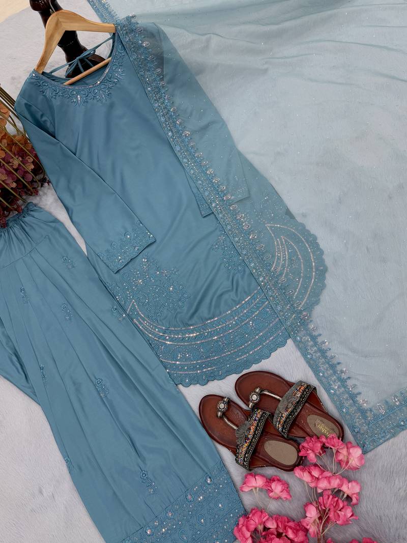 | • | Dupatta | : | Color- Sky Blue / Fabric- Organza |