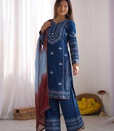 Embroidered rayon cotton kurta set with farshi pant & georgette dupatta | ready to wear stitched