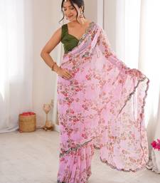 | Product Name | Heavy Georgette Floral Mini Flower Print Saree With Mirror Work & Cutwork Border | |