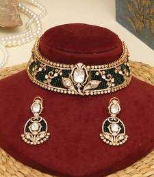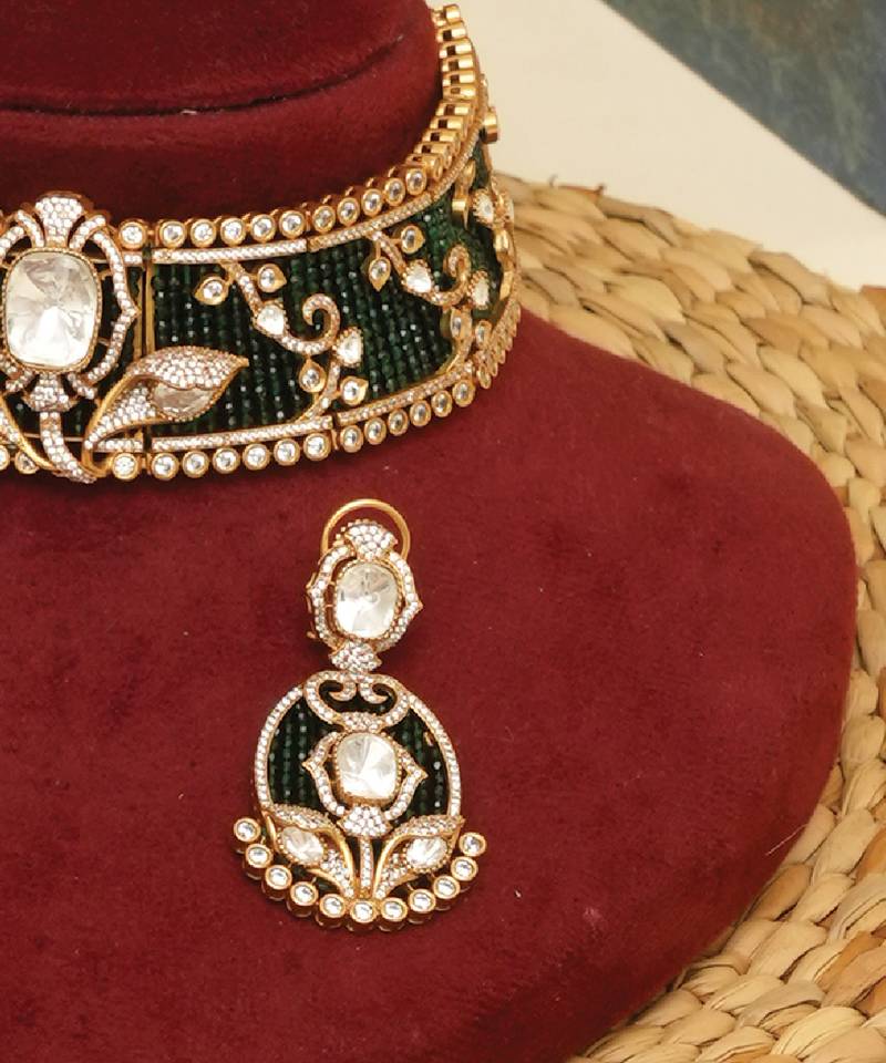 | Product Name | Gold Plated Emerald Green Stones Choker Necklace Set | |