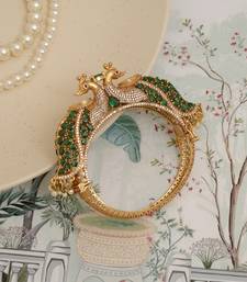 | Product Description | This Gold Plated Heritage Kada Features Rich Green Stones Set In An Intricate Traditional Design. The Elegant Detailing Enhances Its Regal Appeal, Making It Perfect For Festive Wear. A Timeless Accessory That Complements Ethnic Outfits Beautifully, Adding Sophistication And A Touch Of Classic Charm To Your Look.