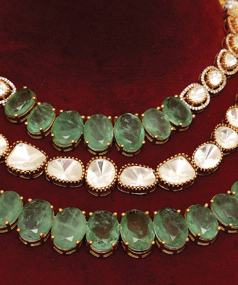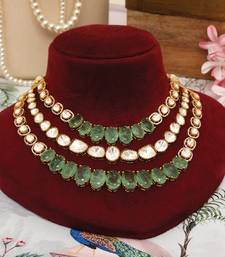| Product Name | Gold Plated Kundan Green Stones Multi Layered Necklace Set | |