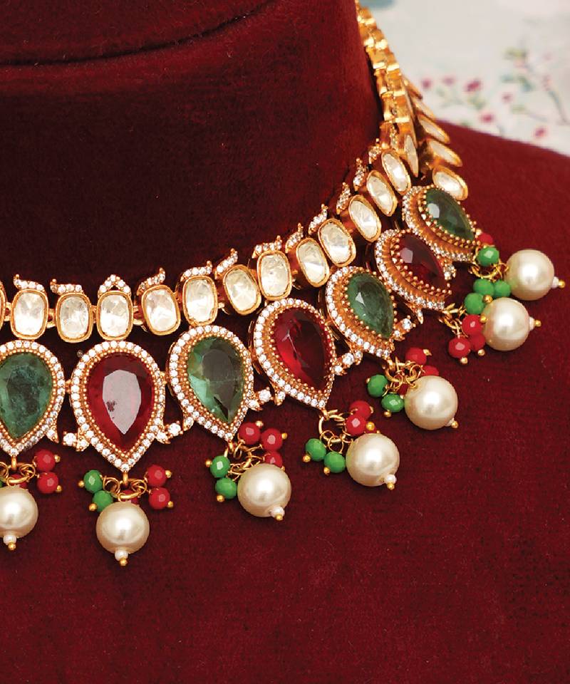 | Product Name | Gold Plated Kundan Multicolor Stones Choker Necklace Set | |