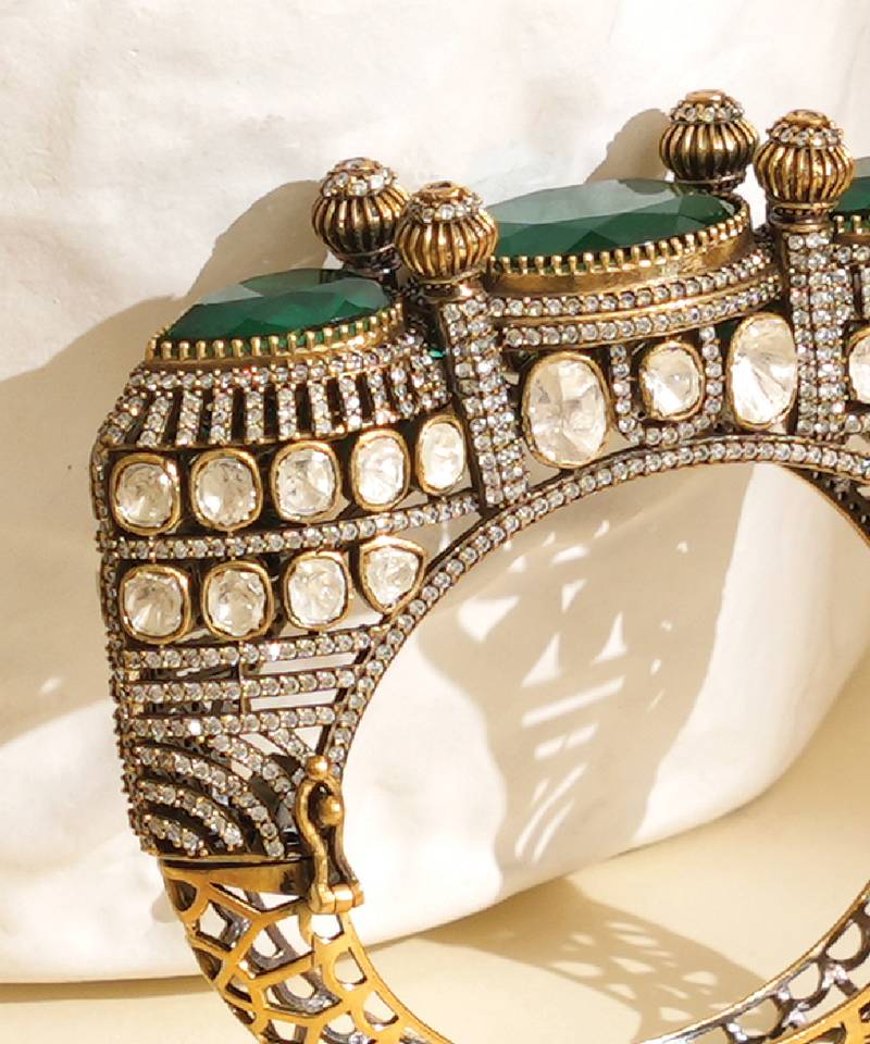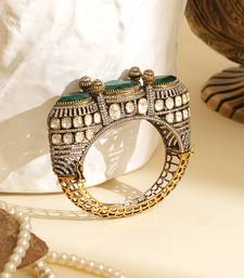 | Product Description | This Zircon Green Stone Royal Kada Showcases A Luxurious Design With Finely Studded Stones That Reflect Brilliance. Crafted For Elegance, It Adds A Regal Touch To Your Look. Perfect For Festive And Special Occasions, Its Bold Yet Refined Style Enhances Both Traditional And Contemporary Outfits Effortlessly.