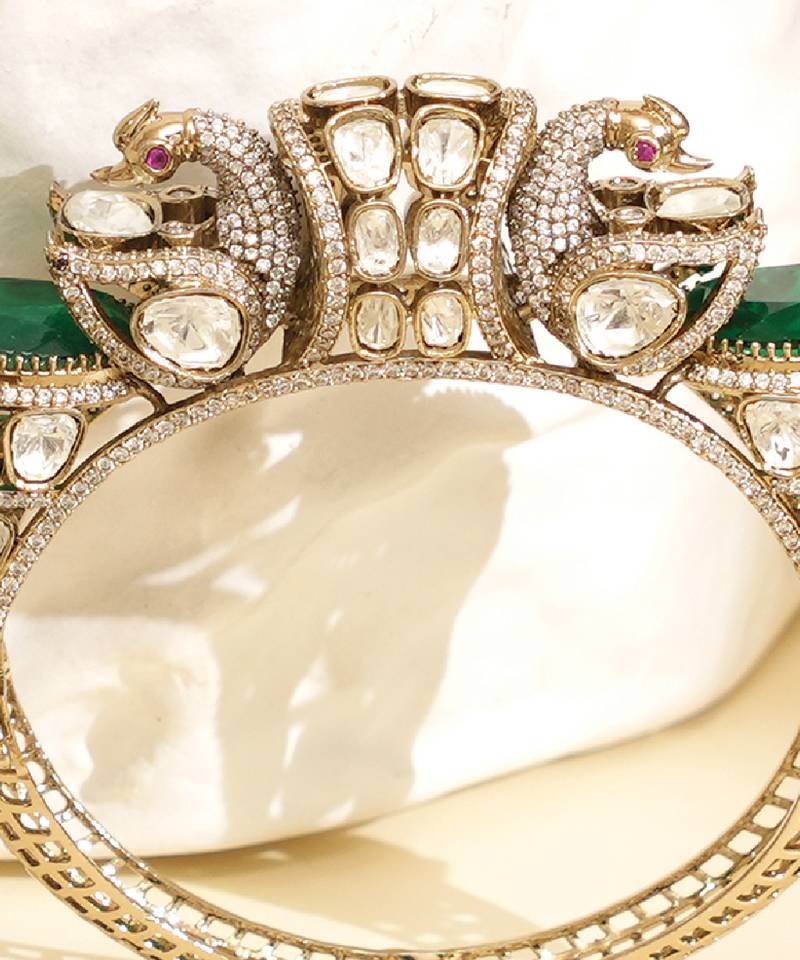 | Product Description | Designed With Precision, This Zircon Green Stone Royal Kada Blends Sparkle And Elegance Seamlessly. The Vibrant Green Stones Enhance Its Luxurious Feel, Making It Perfect For Special Occasions. Its Sturdy Yet Stylish Design Ensures A Comfortable Fit While Adding A Refined Charm To Your Overall Look.