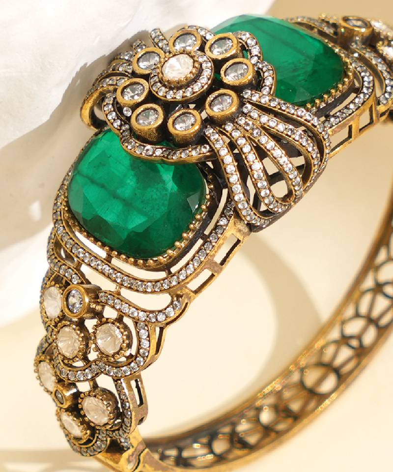 | Product Description | This Zircon Green Stone Royal Kada Blends Intricate Craftsmanship With A Bold Design. The Vibrant Stones Create A Striking Look, Making It Ideal For Festive Wear. A Versatile Accessory That Enhances Your Outfit With Elegance, Offering A Perfect Balance Of Tradition And Contemporary Style.