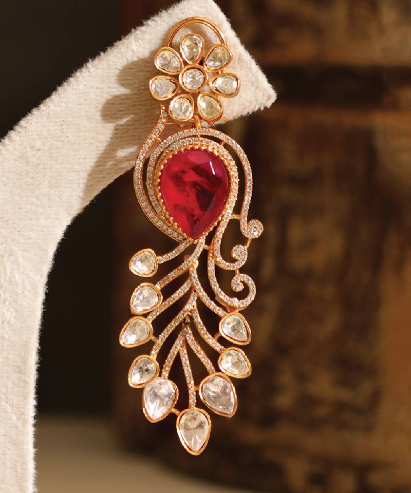 | Product Description | Crafted With Shimmering Zircon And Red Stones, These Danglers Offer A Striking And Elegant Appeal. The Detailed Design Enhances Their Luxurious Look, Making Them Ideal For Special Occasions. A Perfect Accessory To Add Sparkle And Sophistication To Your Overall Ensemble.