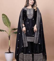 | Product Name | Black Festive Wear Designer Chinon Sequence Embroidery Work Readymade Suit | |