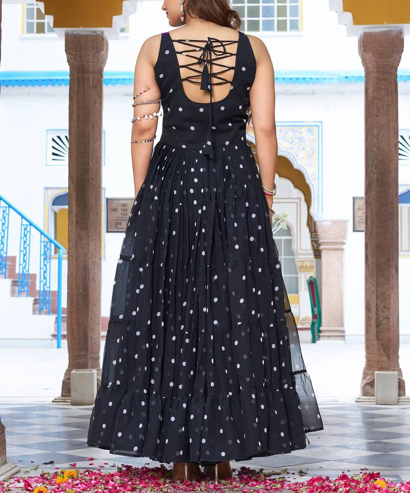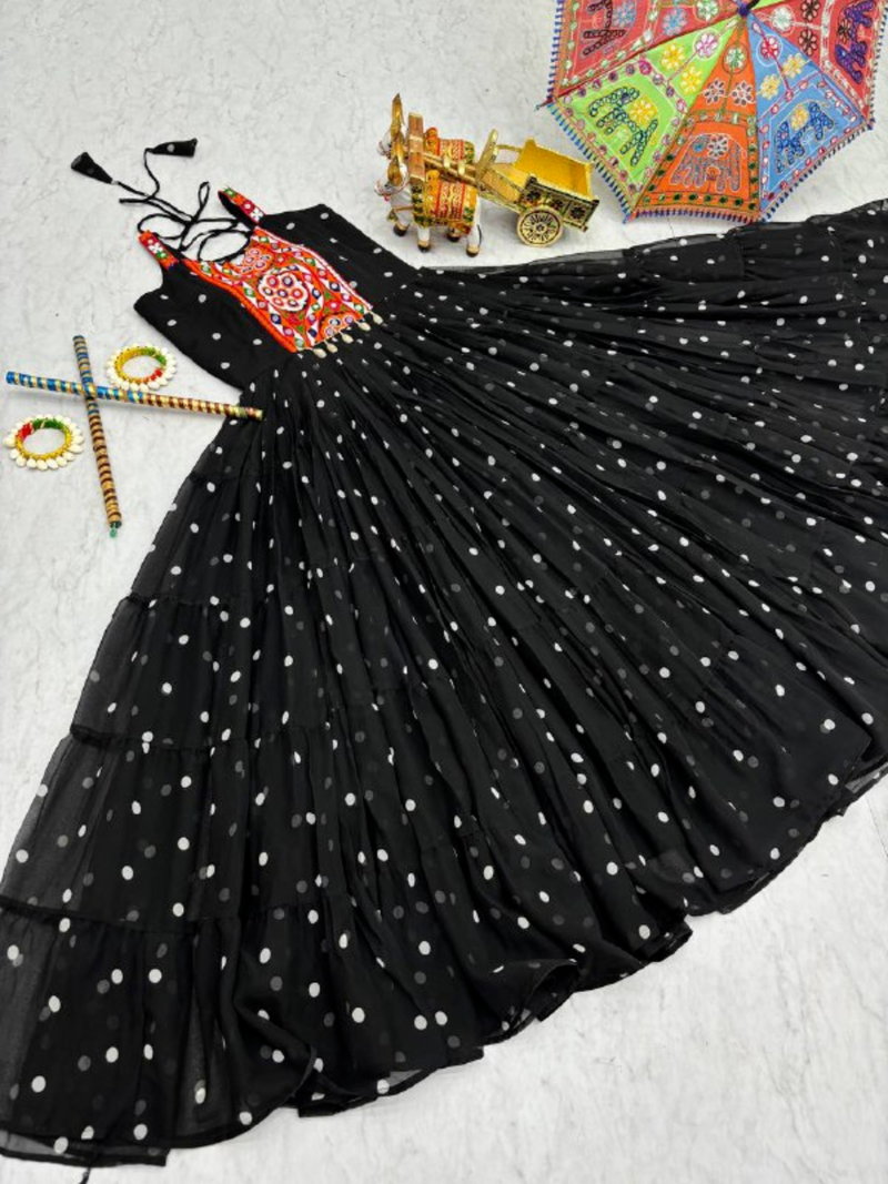 Black festive wear designer georgette bandhani print with gamathi work with real mirror readymade suit stitched