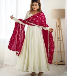 Cream festive wear designer heavy pure soft vichitra silk readymade suit stitched