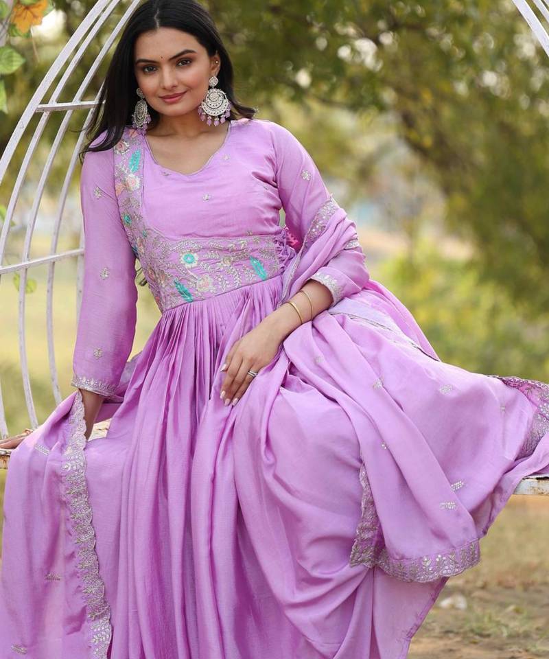 | Product Name | Lavender Festive Wear Designer Pure Chinon Heavy Sequence Embroidery Work Readymade Suit | |