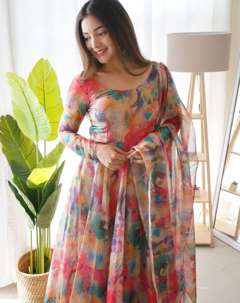 | • | Dupatta | : | Color- Multicolor / Fabric- Pure Georgette |