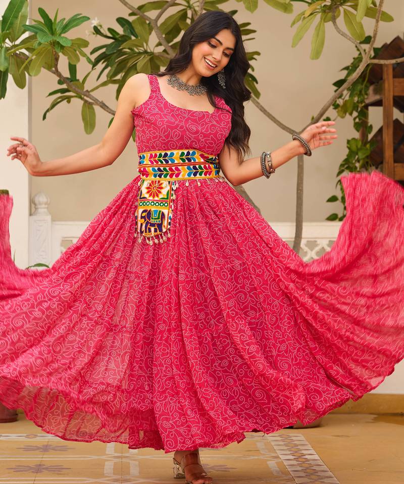 | Product Name | Pink Festive Wear Designer Faux Georgette Gamathi Work With Real Mirror With Original Codi Lace Readymade Suit | |