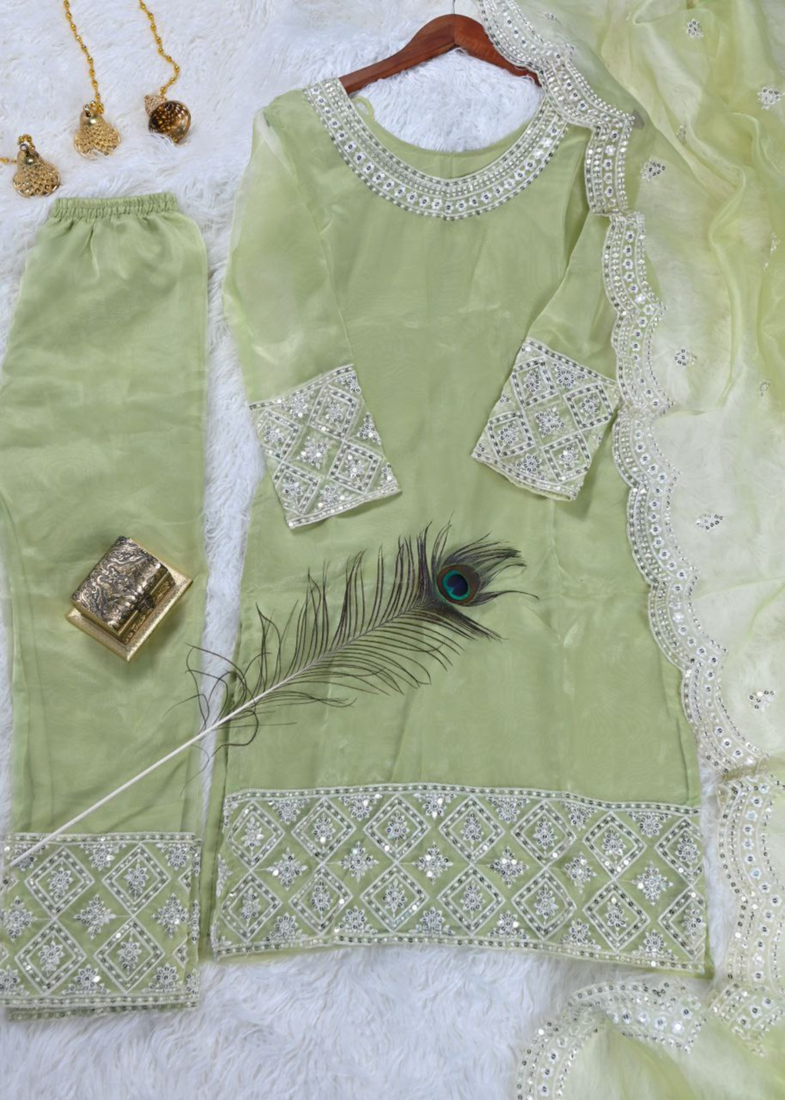 | Product Name | Pista Festive Wear Designer Organza Heavy Embroidery Sequence Work Readymade Suit | |