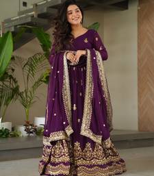 Purple festive wear designer faux blooming georgette zari & sequins embroidered work readymade suit stitched