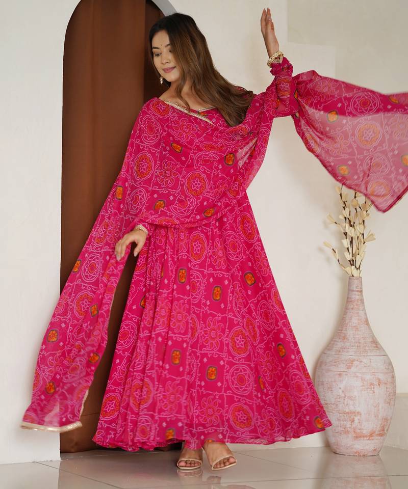 | Product Name | Rani Pink Festive Wear Designer Pure Soft Lightweight Chiffon Bandhej Readymade Suit | |