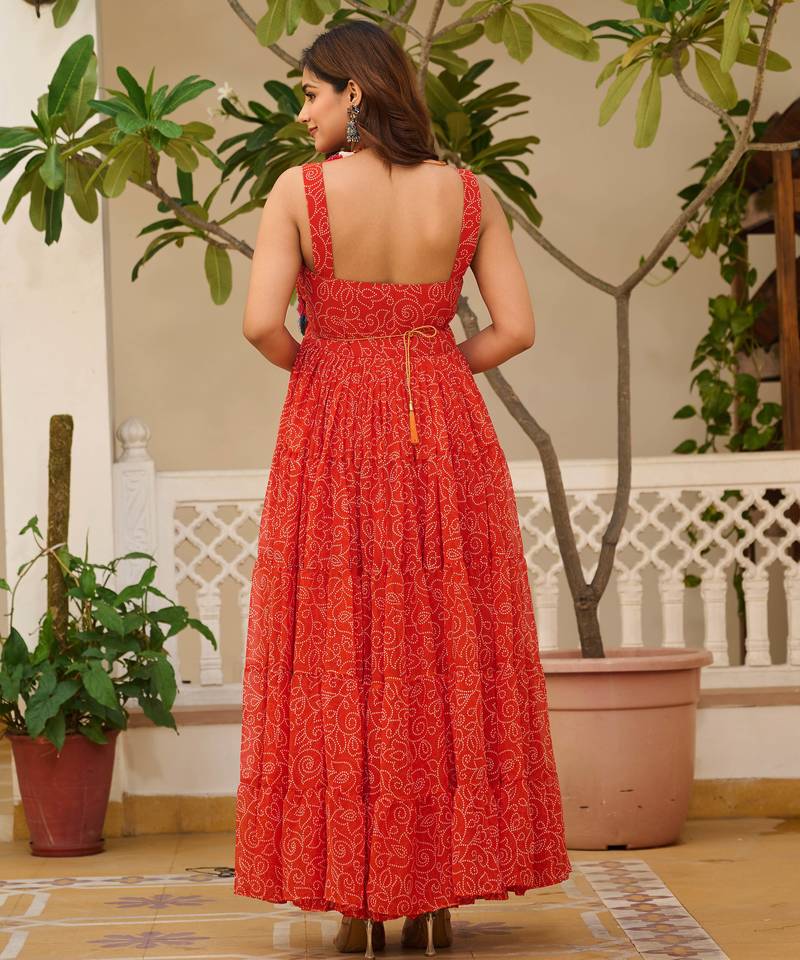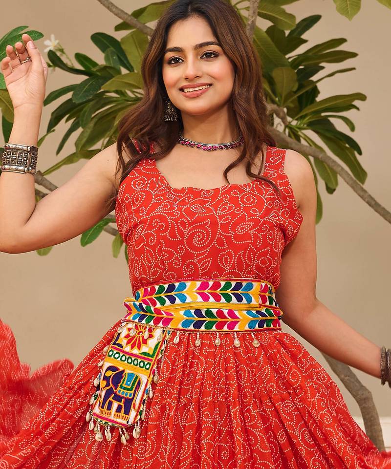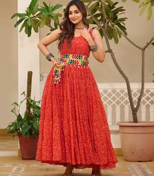 | Product Name | Red Festive Wear Designer Faux Georgette Gamathi Work With Real Mirror With Original Codi Lace Readymade Suit | |