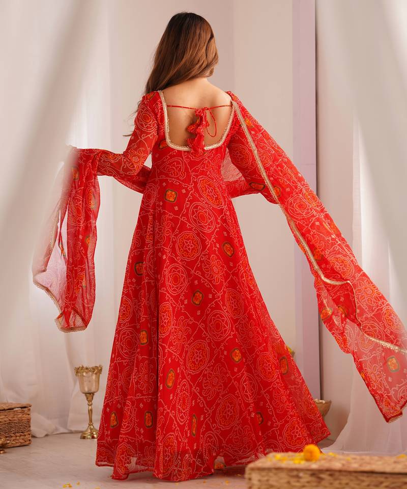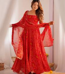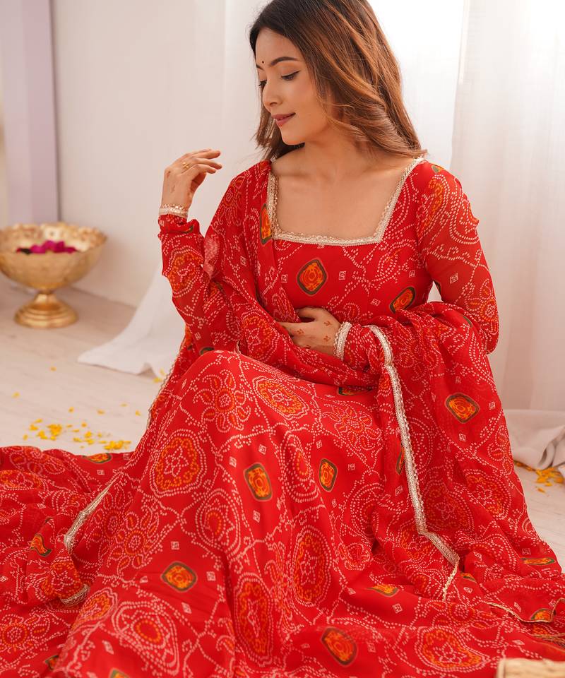 | Product Name | Red Festive Wear Designer Pure Soft Lightweight Chiffon Bandhej Readymade Suit | |