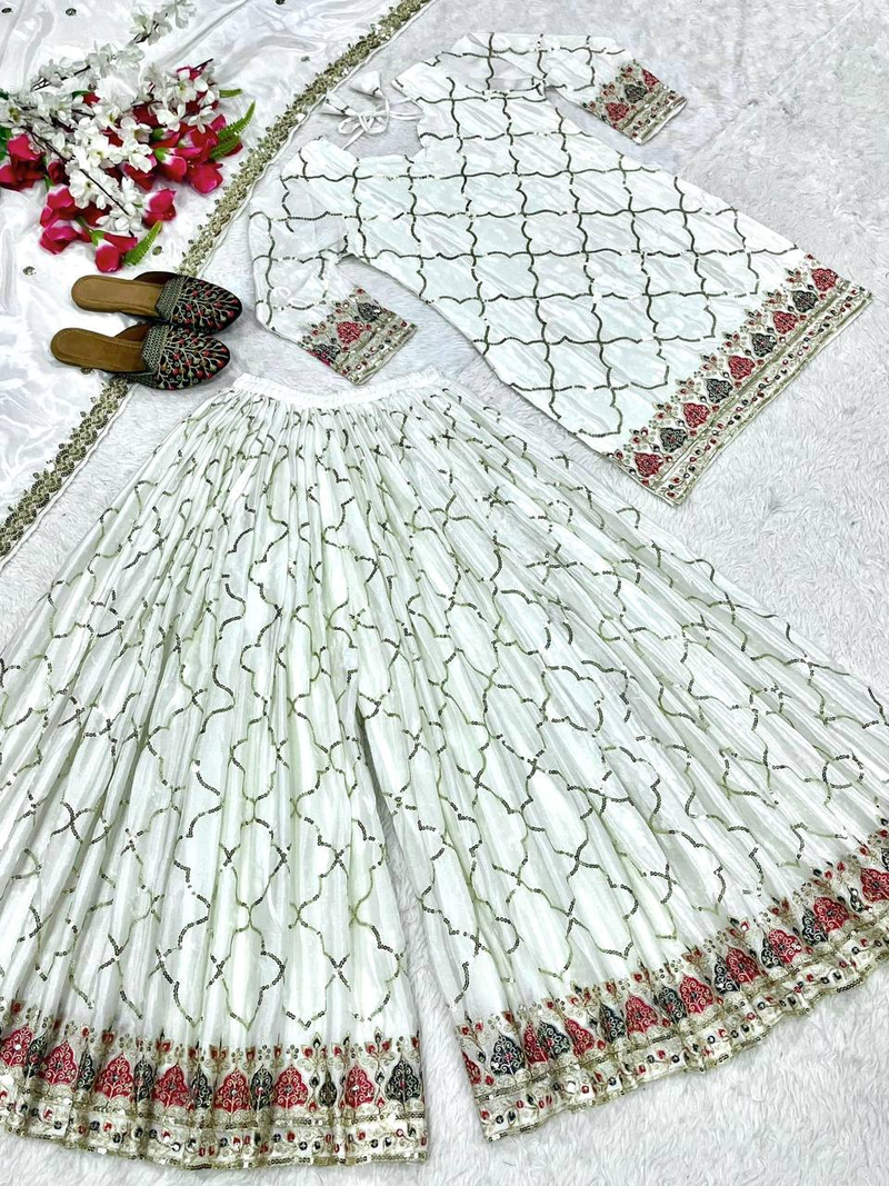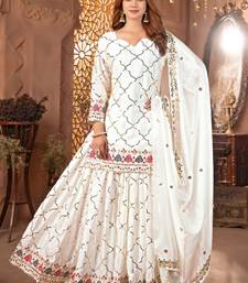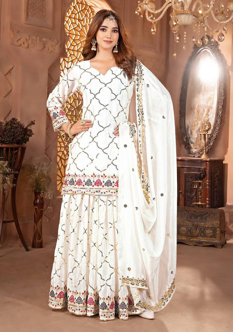 White festive wear designer heavy chinnon silk readymade suit stitched