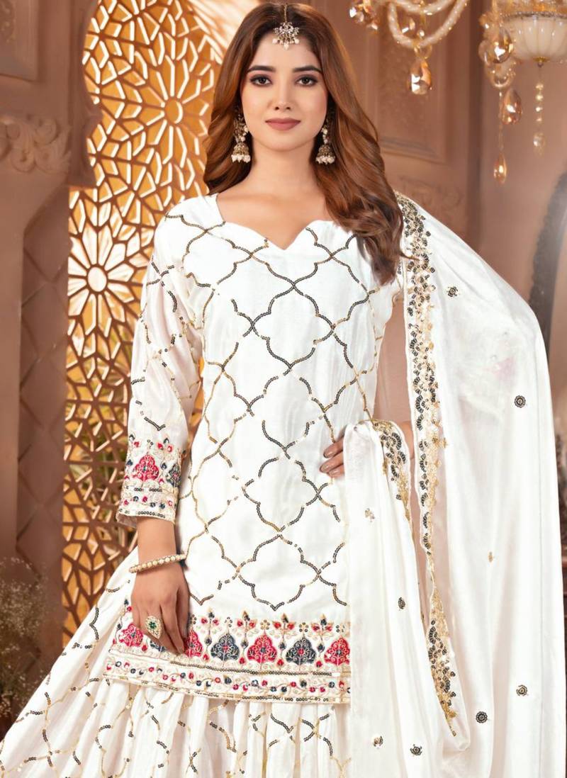 | Product Name | White Festive Wear Designer Heavy Chinnon Silk Readymade Suit | |