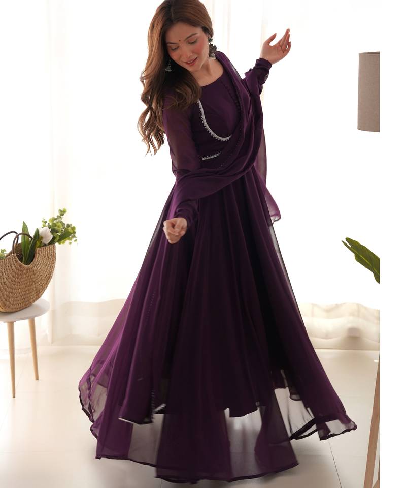 | Product Name | Wine Festive Wear Designer Heavy Pure Soft Fox Georgette Readymade Suit | |