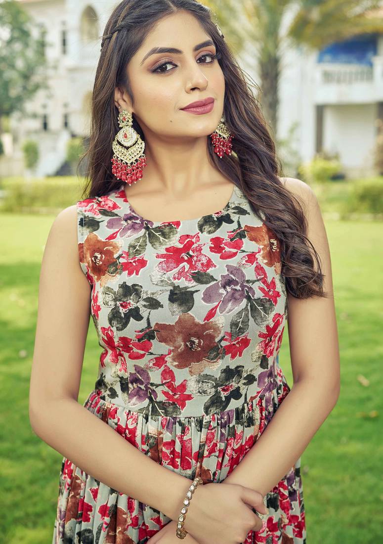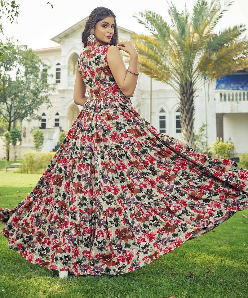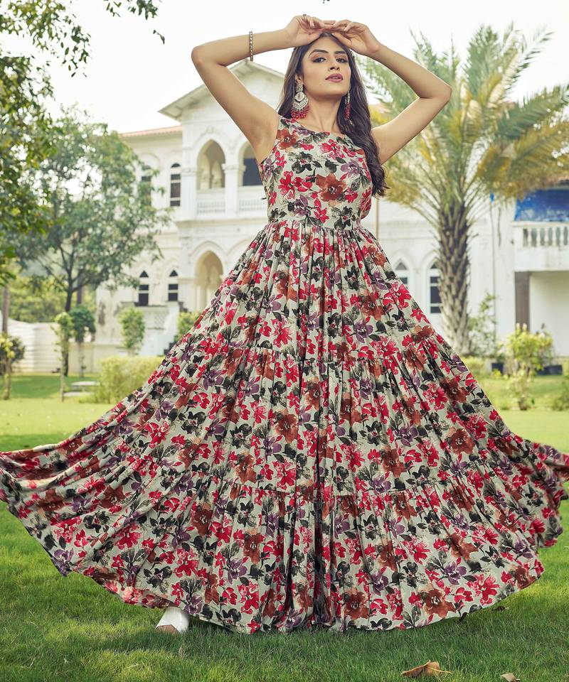 | Product Name | Women Beige Red Floral Printed Sleeveless Anarkali Maxi Dress | |