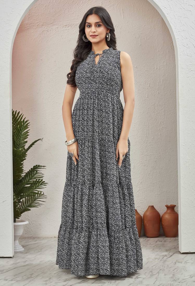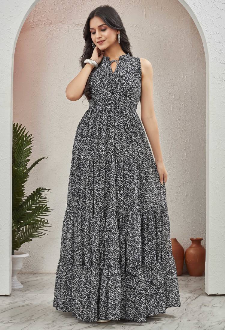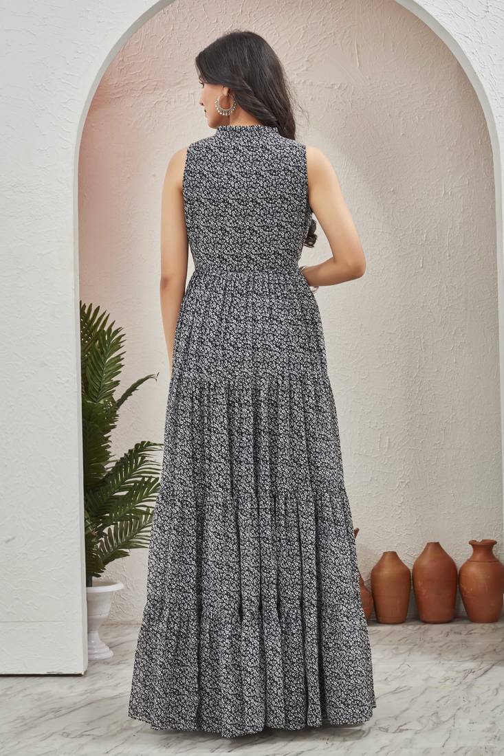 | Product Name | Women Black All Over Floral Print Georgette Fit & Flare Gown | |