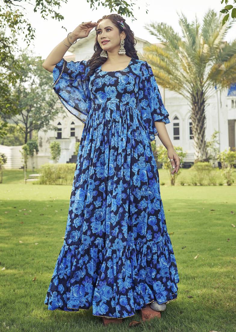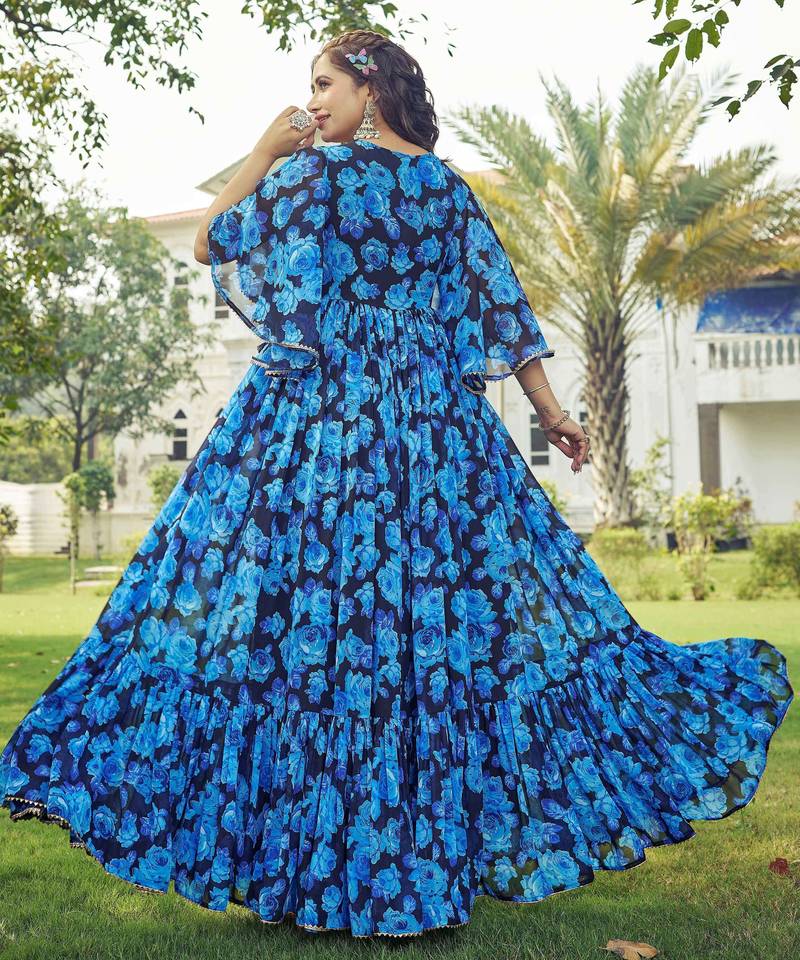 | Product Name | Women Blue Floral Print Georgette Fit & Flare Gown | |