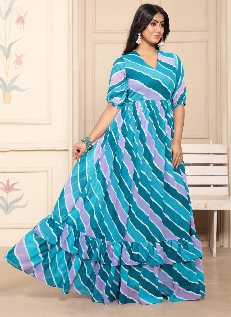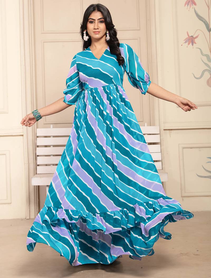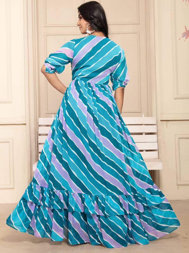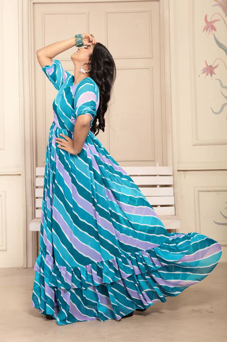| Product Name | Women Blue Striped Print Georgette Fit & Flare Gown | |