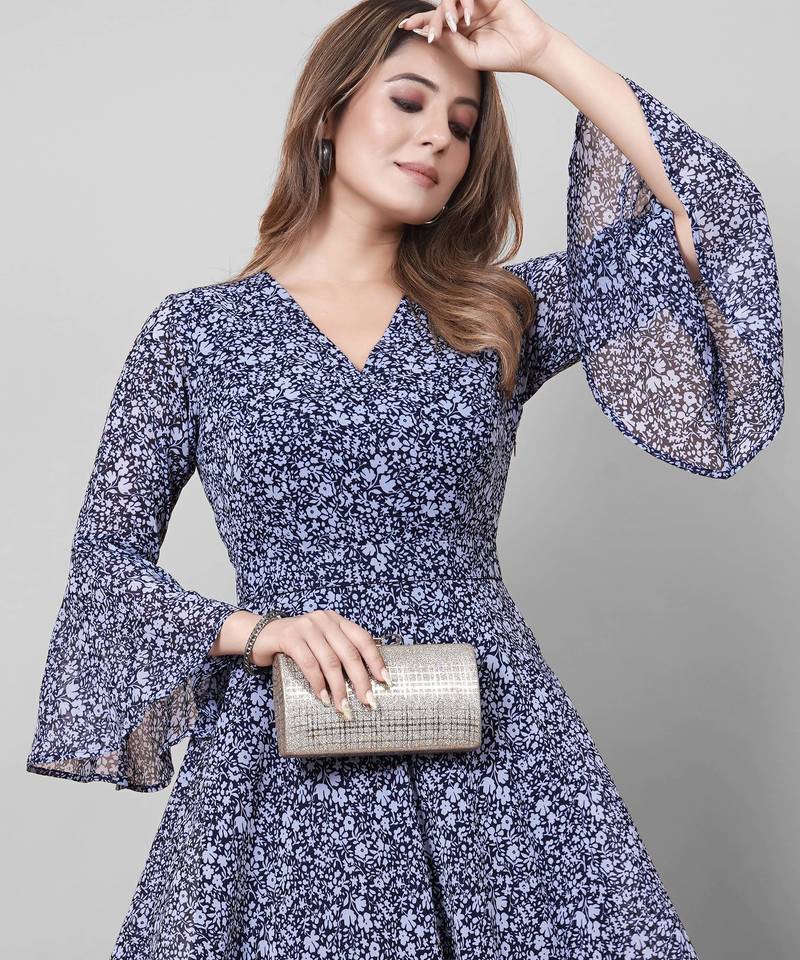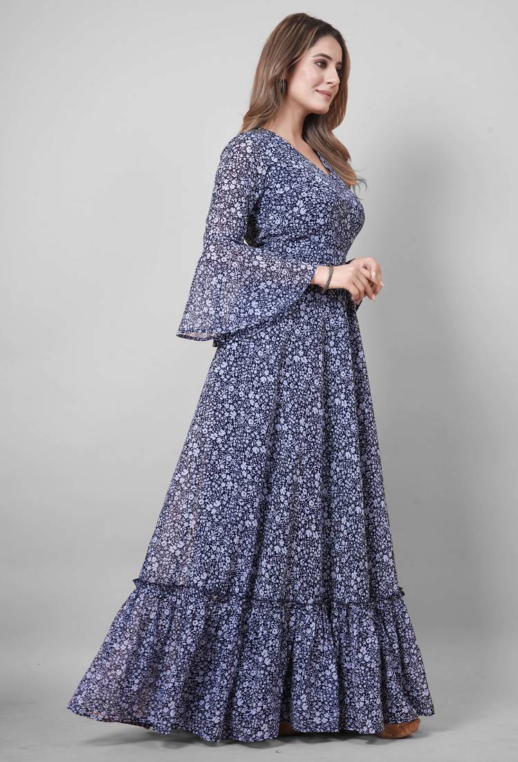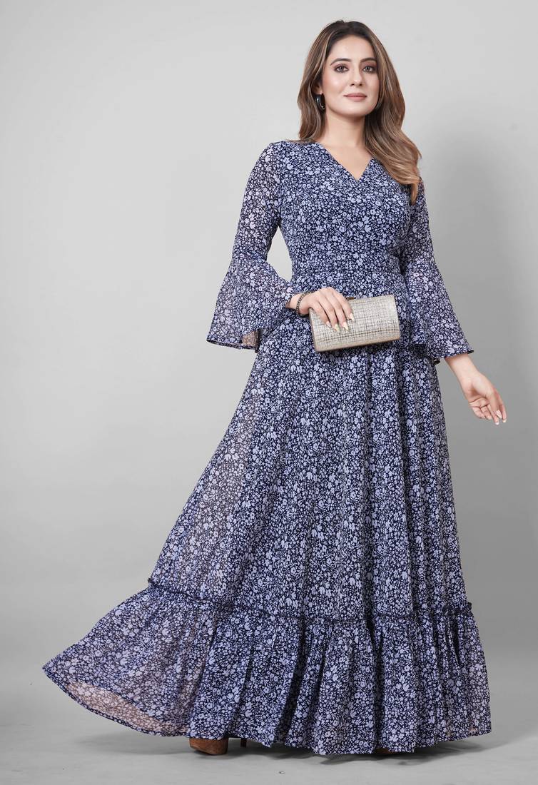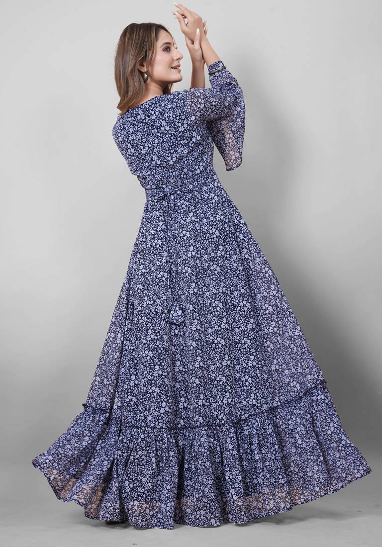 | Product Name | Women Navy Blue All Over Floral Print Georgette Fit & Flare Gown | |