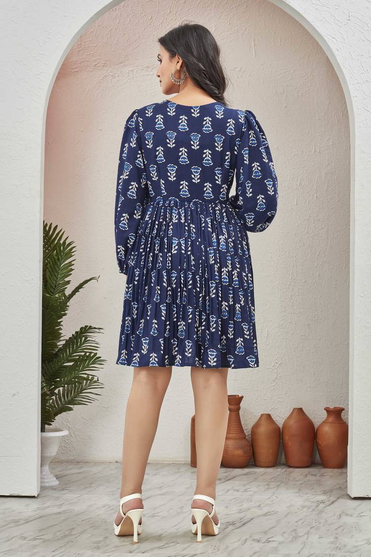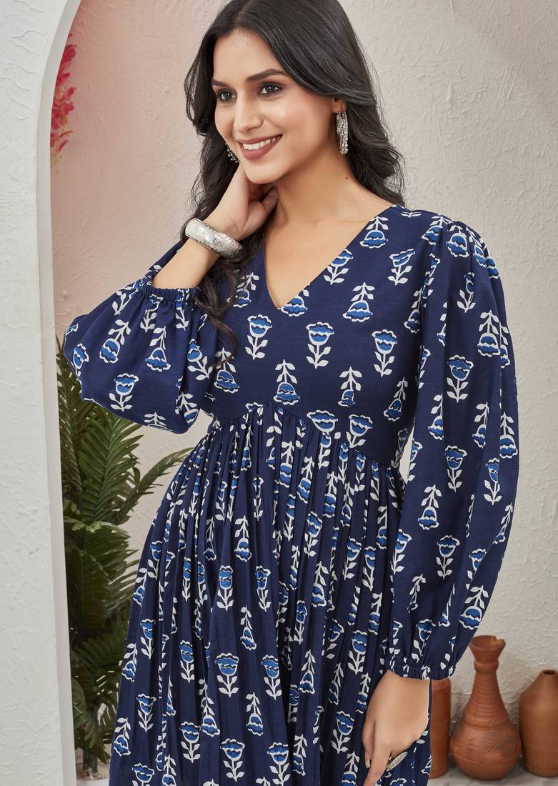 | Product Name | Women Navy Blue All Over Floral Print Poly Cotton Fit & Flare Gown | |