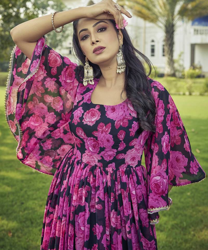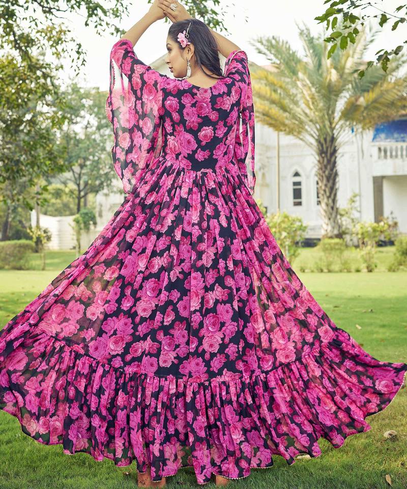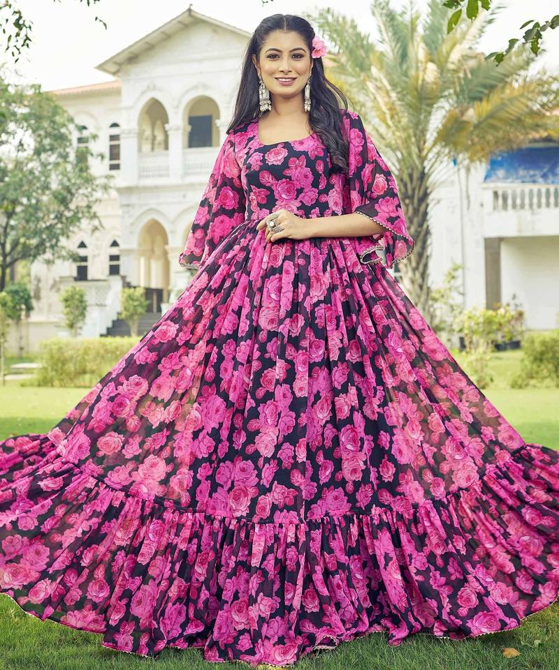 | Product Name | Women Pink Floral Print Georgette Fit & Flare Gown | |