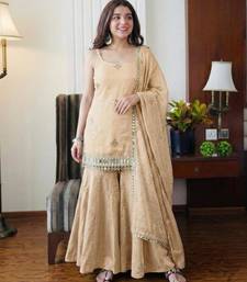 Cream silk blend embroidered sharara set stitched