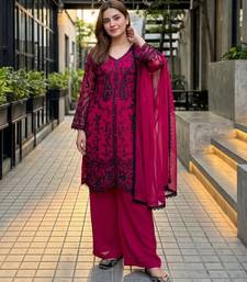 | • | Kameez | : | Color- Dark Pink / Fabric- Faux Georgette |