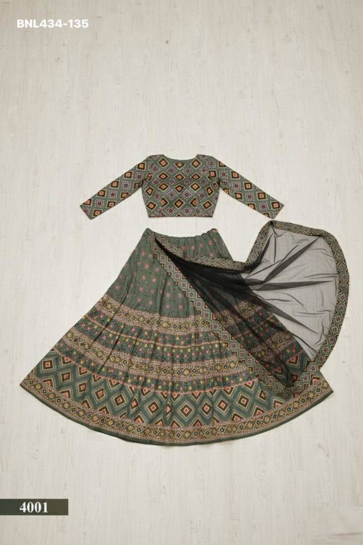 | Product Name | Green Ajmeri Silk Printed Lehengas | |