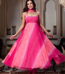 Hot pink faux georgette plain anarkali duppta palazzo stitched