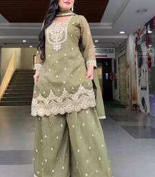 Light olive embroidered sharara set stitched