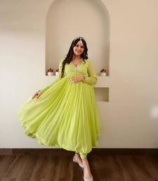 Lime green anarkali suit set stitched