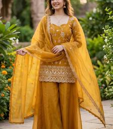 | Product Name | Mustard Silk Blend Embroidered Palazzo Set | |