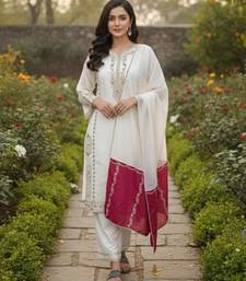 | • | Kameez | : | Color- Off White / Fabric- Silk Blend |