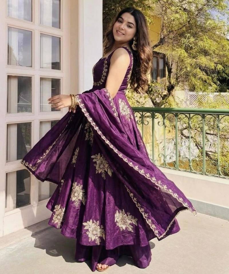 | Product Name | Purple Silk Blend Embroidered Gown 7meter Fully Flair | |
