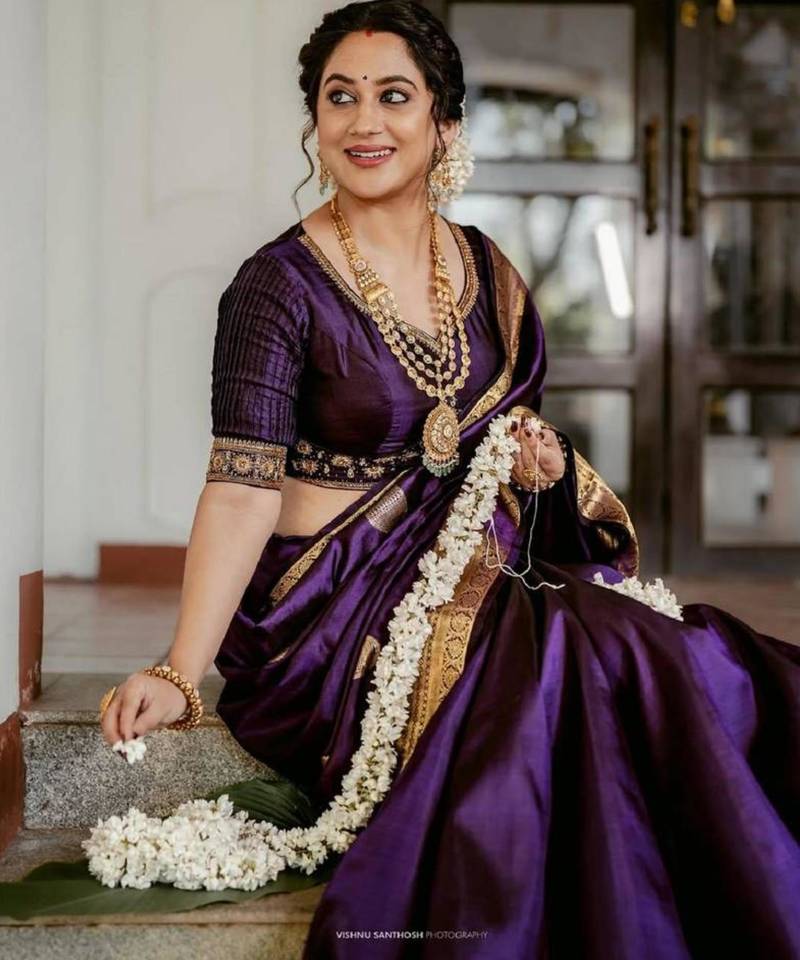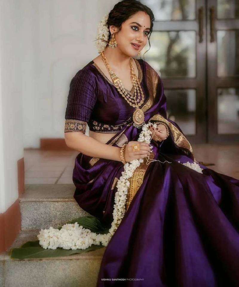 | • | Saree | : | Color- Purple / Fabric- Silk Blend |