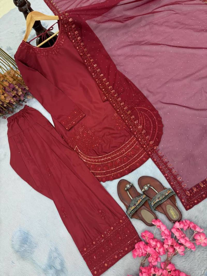 | Product Name | Red Crepe Embroidered Farshi Palazzo | |